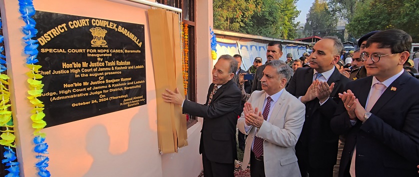 Baramulla, Oct 24 (KNO): Chief Justice, High Court of Jammu and Kashmir and Ladakh, Justice Tashi Rabstan, Thursday visited Baramulla and inaugurated the newly created Narcotics Drugs and Psychotropic Substances (NDPS) Court at District Court Complex here.